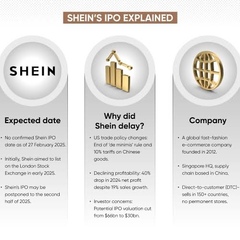 ОписаниеShein и Temu являются крупными компаниями в сфере электронной коммерции. Проведение IPO с высокой оценкой зависит от рыночных условий и регуляторных требований.