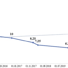 ОписаниеБанк России определяет денежно-кредитную политику и устанавливает ключевую ставку. Исторический максимум ключевой ставки ЦБ РФ составляет 20%.